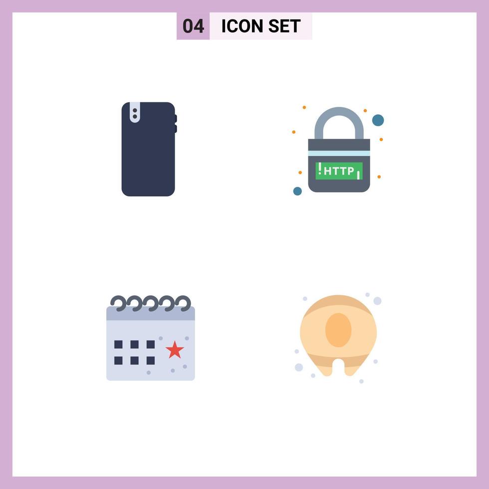 Universal Icon Symbols Group of 4 Modern Flat Icons of phone security android http date Editable Vector Design Elements Free Vector
