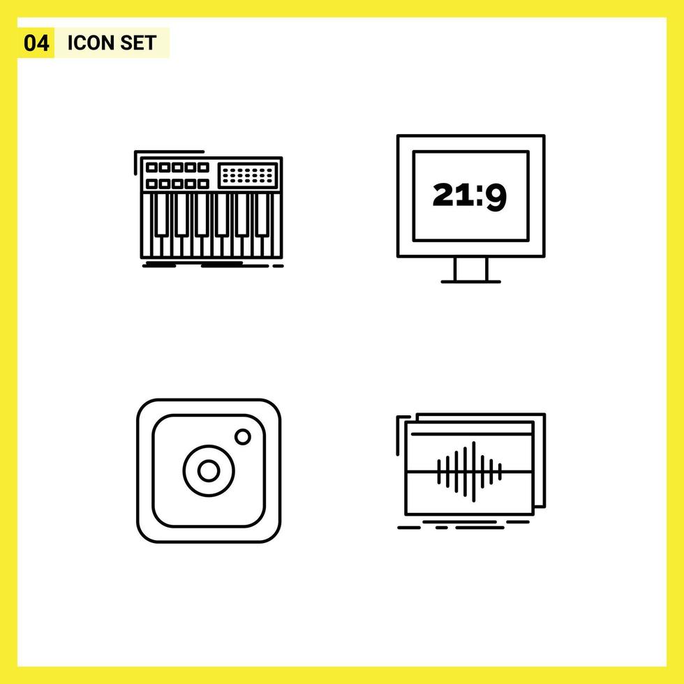 4 Line concept for Websites Mobile and Apps synth media synthesiser hd audio Editable Vector Design Elements