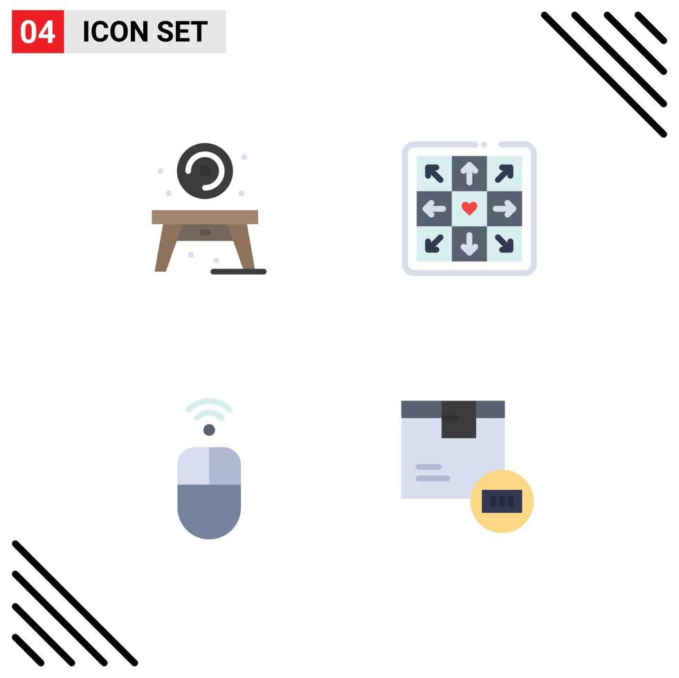 Mobile Interface Flat Icon Set of 4 Pictograms of home mouse disk play barcode Editable Vector Design Elements