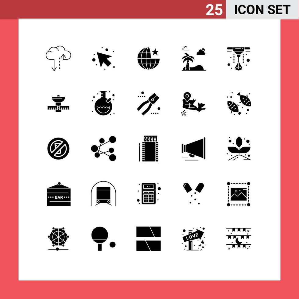 Pictogram Set of 25 Simple Solid Glyphs of space printer internet laser tree Editable Vector Design Elements