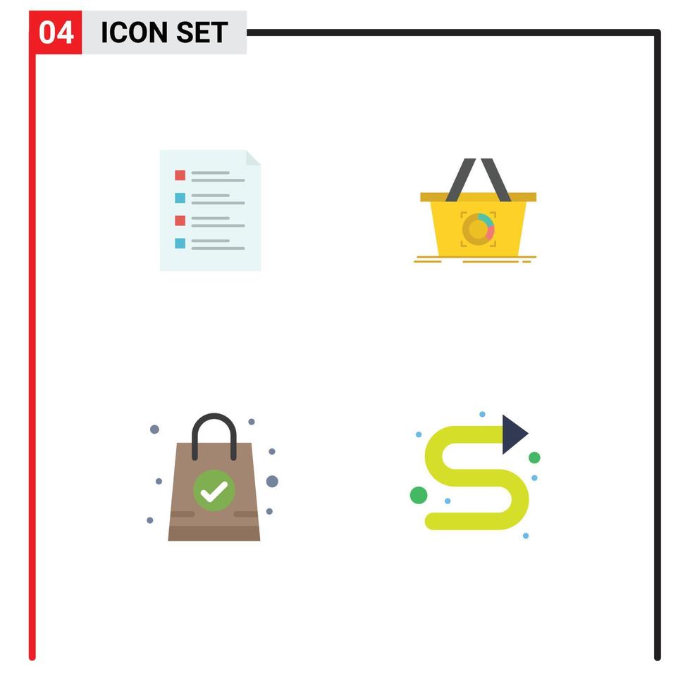 Mobile Interface Flat Icon Set of 4 Pictograms of checklist basket list testing hand bag Editable Vector Design Elements