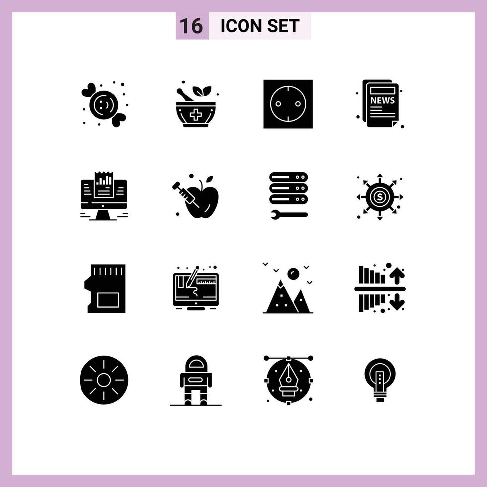 Editable Vector Line Pack of 16 Simple Solid Glyphs of computer presentation electronic report blog Editable Vector Design Elements