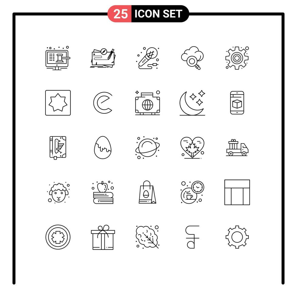 25 Universal Lines Set for Web and Mobile Applications technology cloud quest night music Editable Vector Design Elements Free Vector
