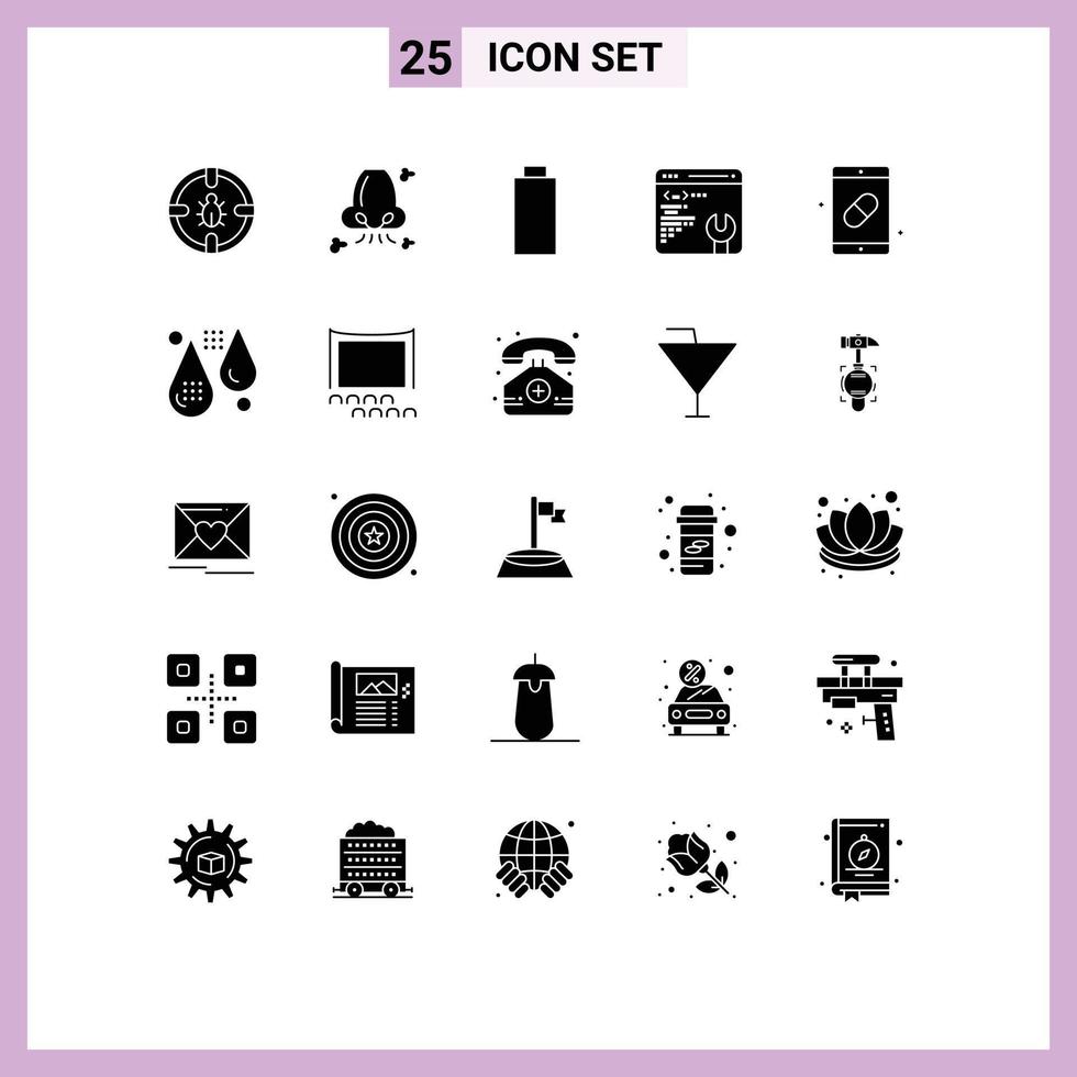 25 Solid Glyph concept for Websites Mobile and Apps health setting nose web page multimedia Editable Vector Design Elements Free Vector