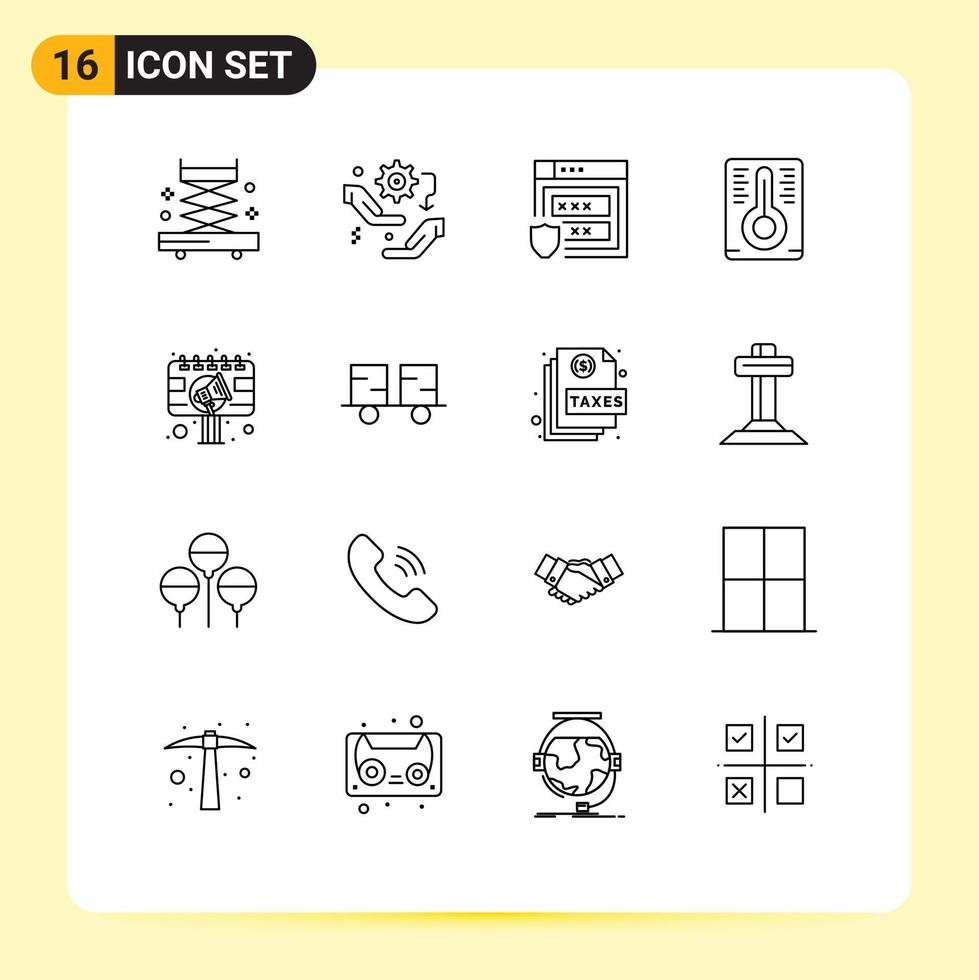Set of 16 Vector Outlines on Grid for billboard advertisement gdpr ad temperature Editable Vector Design Elements