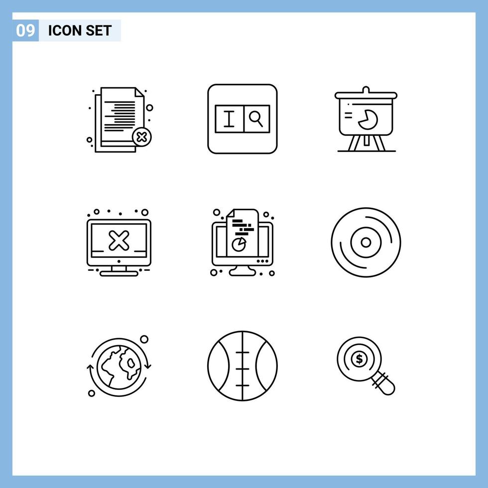 9 Universal Outlines Set for Web and Mobile Applications chart screen chart hardware graph Editable Vector Design Elements
