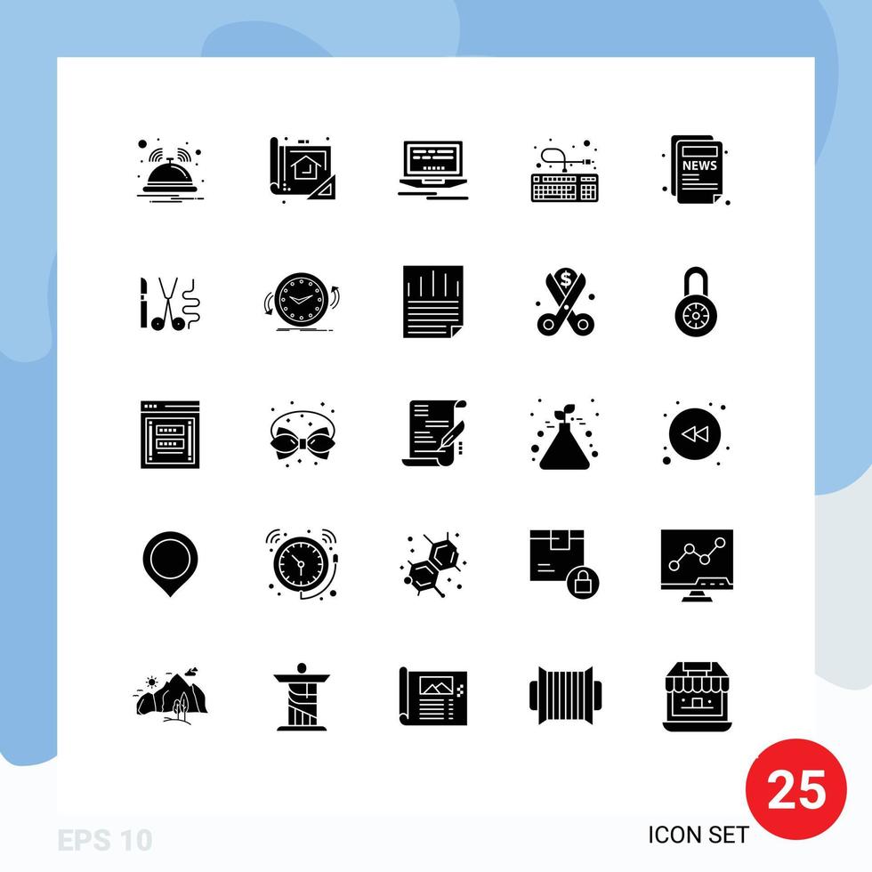 25 Thematic Vector Solid Glyphs and Editable Symbols of blog connection print hardware computer Editable Vector Design Elements