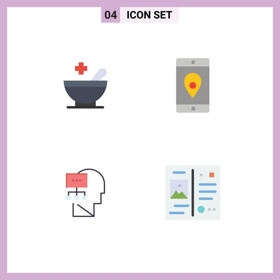 User Interface Pack of 4 Basic Flat Icons of medical theory application location head Editable Vector Design Elements Free Vector