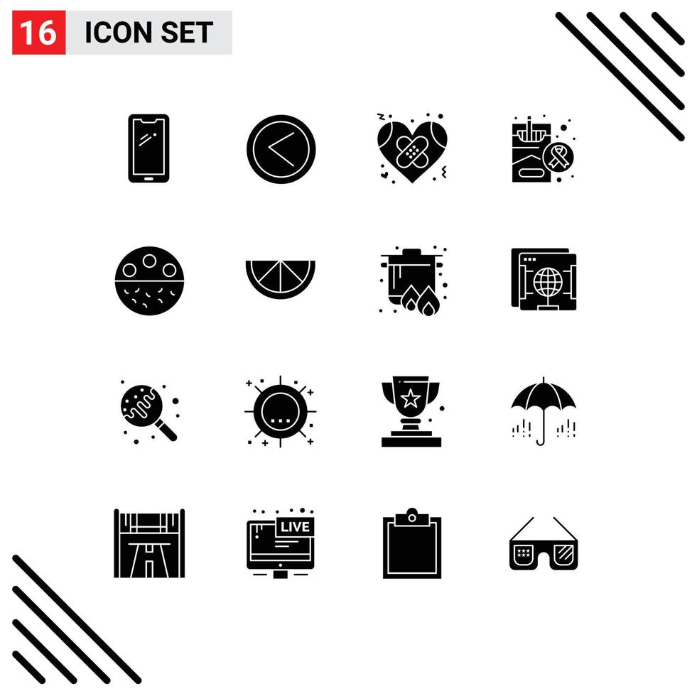 16 Universal Solid Glyphs Set for Web and Mobile Applications smoking health user cigarette heart Editable Vector Design Elements Free Vector