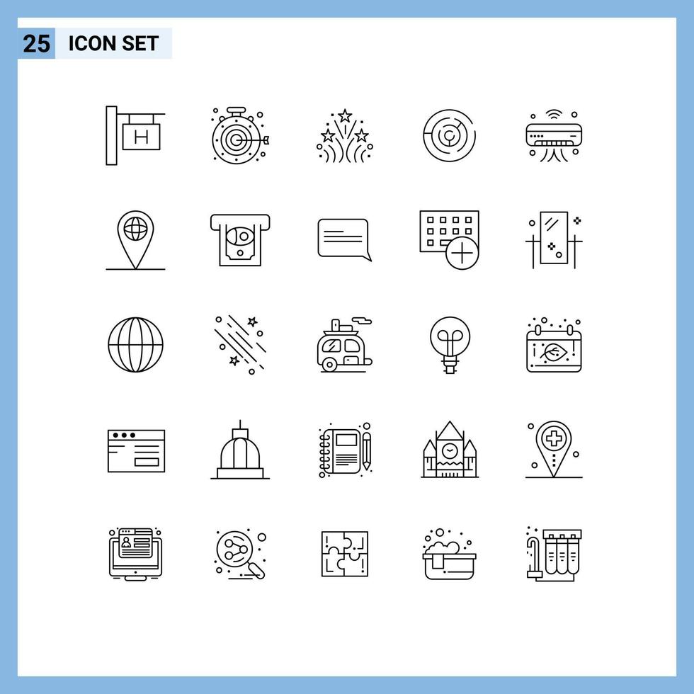 Modern Set of 25 Lines Pictograph of internet point firework target arrow Editable Vector Design Elements