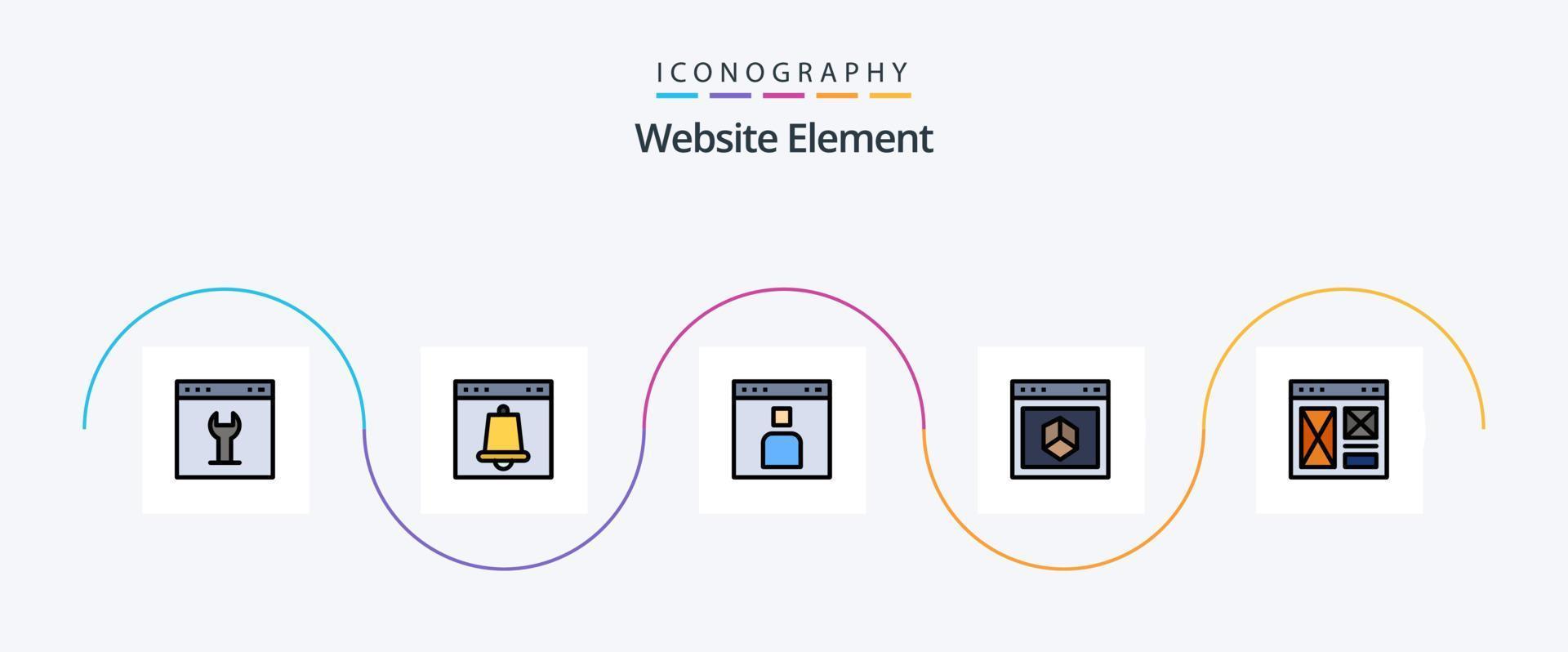 Website Element Line Filled Flat 5 Icon Pack Including element. application. interface. people. interface vector