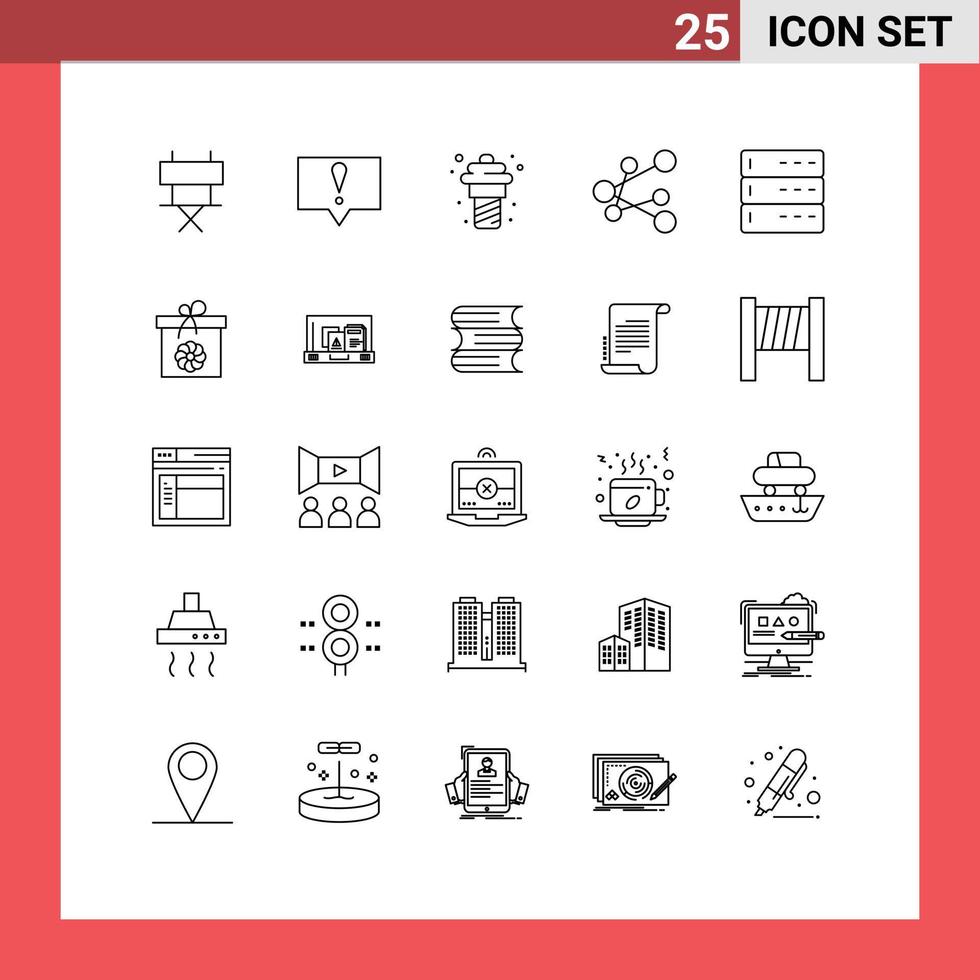 Pictogram Set of 25 Simple Lines of server data food admin link Editable Vector Design Elements