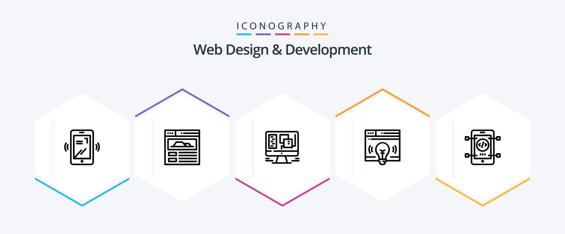 Web Design And Development 25 Line icon pack including . webpage . computer . web . vector