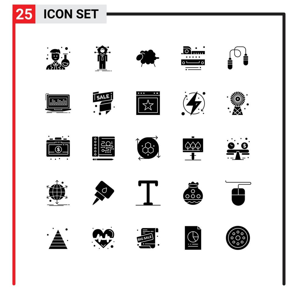 25 User Interface Solid Glyph Pack of modern Signs and Symbols of exercise ruler solution measuring easter Editable Vector Design Elements