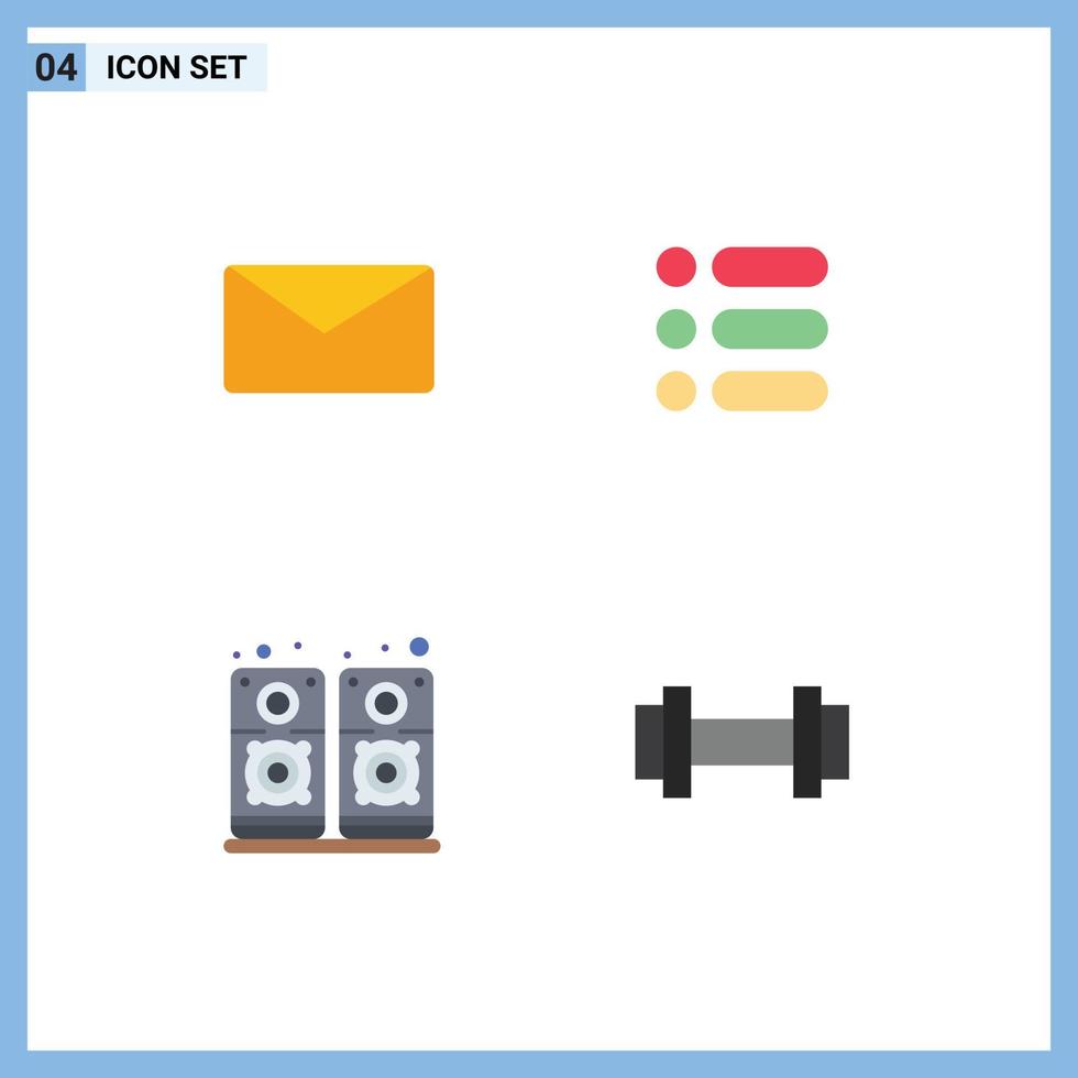 Set of 4 Vector Flat Icons on Grid for mail sound interface text gym Editable Vector Design Elements Free Vector