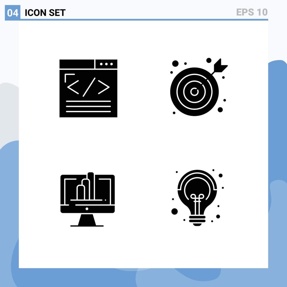 4 User Interface Solid Glyph Pack of modern Signs and Symbols of browser monitor web design center graph Editable Vector Design Elements