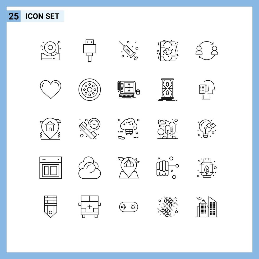 Pack of 25 Modern Lines Signs and Symbols for Web Print Media such as replace avatar injection valentine love Editable Vector Design Elements