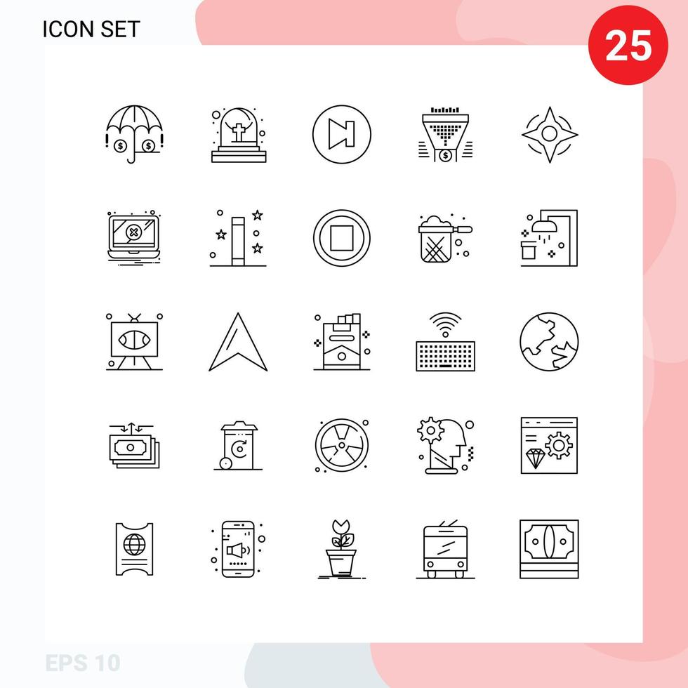 25 Universal Lines Set for Web and Mobile Applications error navigation next compass dollar Editable Vector Design Elements Free Vector