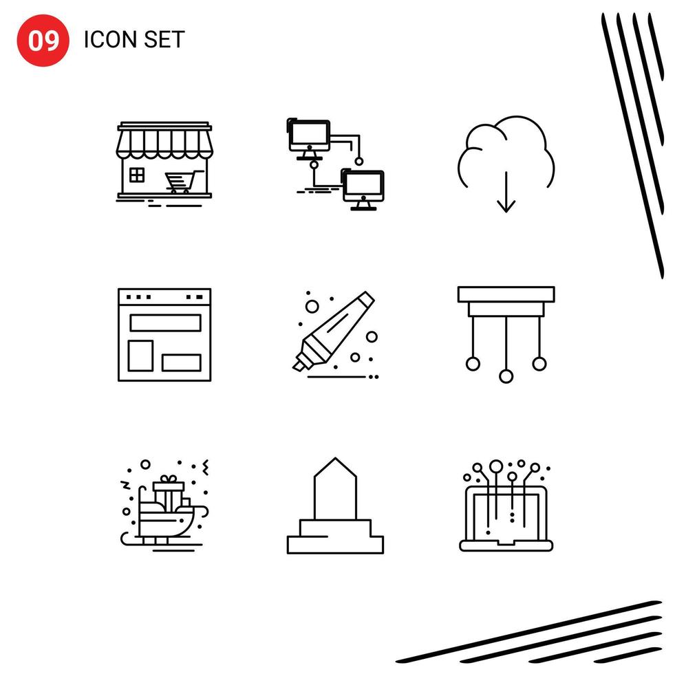 9 Outline concept for Websites Mobile and Apps web layout blog layout sync server download Editable Vector Design Elements