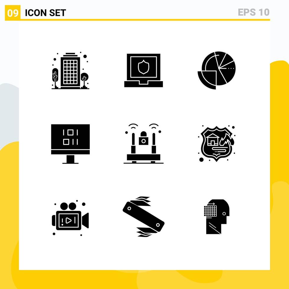 Set of 9 Modern UI Icons Symbols Signs for lock crime analysis sync computer Editable Vector Design Elements Free Vector