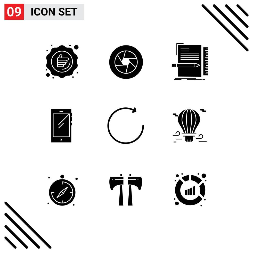 Modern Set of 9 Solid Glyphs and symbols such as mobile phone movie script file Editable Vector Design Elements