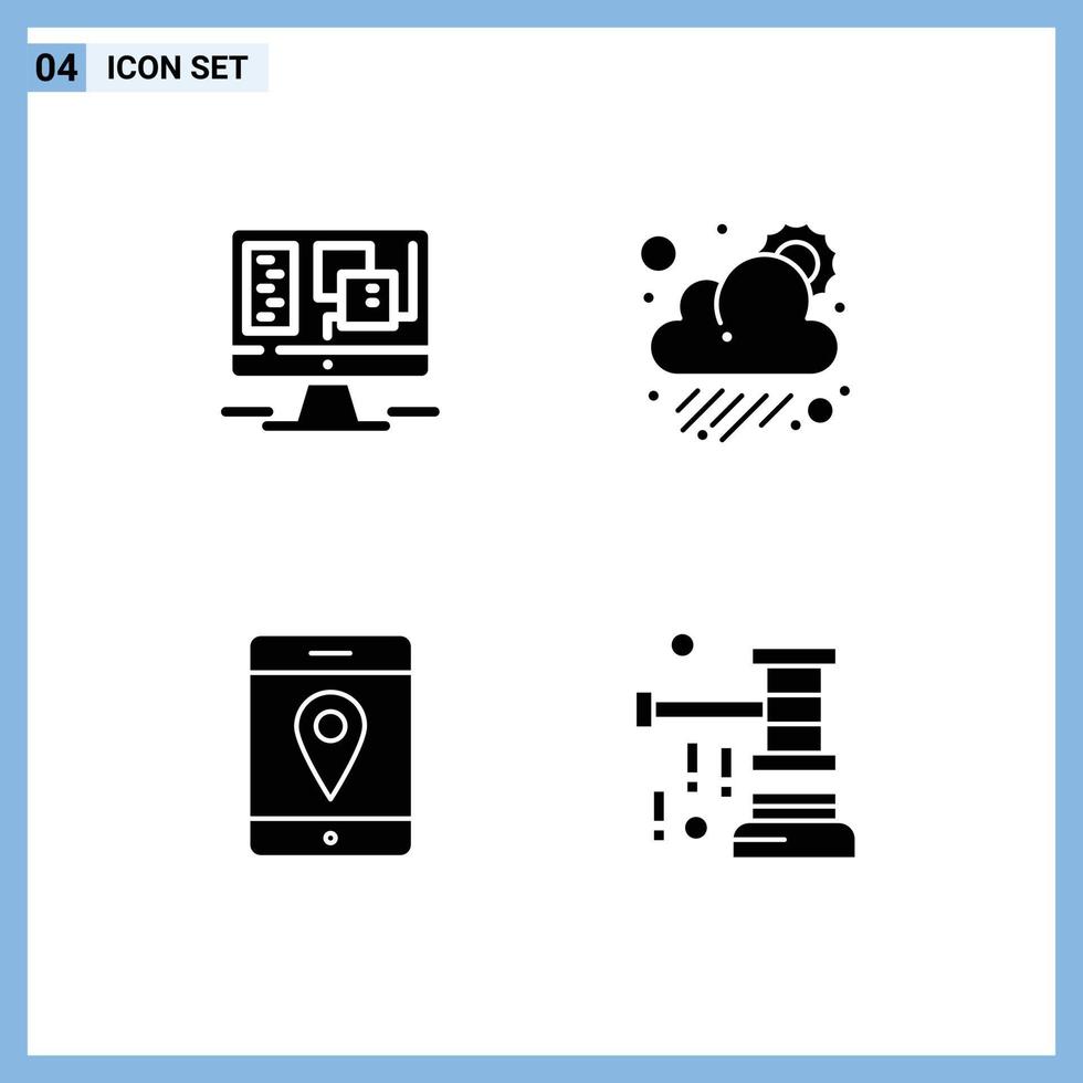 Editable Vector Line Pack of 4 Simple Solid Glyphs of computer maps web sun auction Editable Vector Design Elements