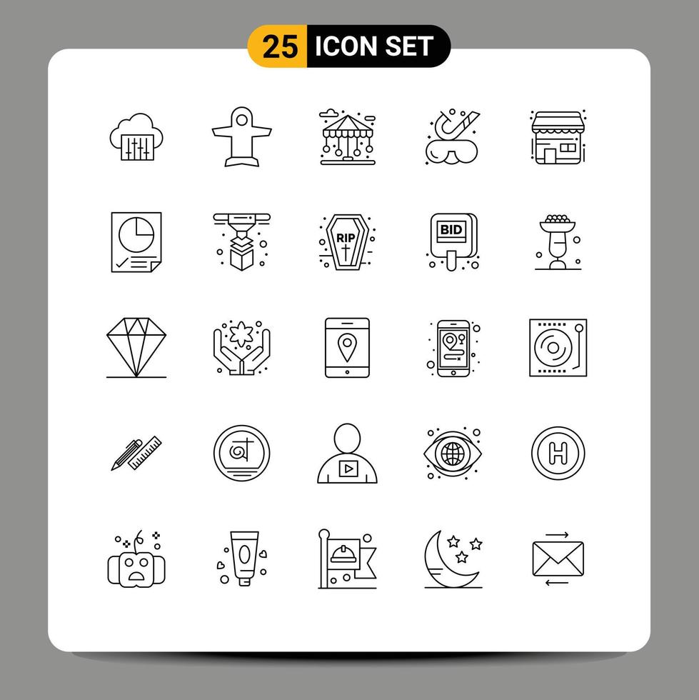 25 Universal Lines Set for Web and Mobile Applications ecommerce underwater building snorkeling beach Editable Vector Design Elements
