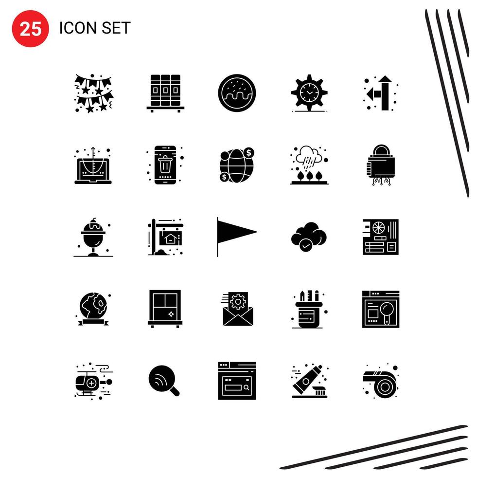 Modern Set of 25 Solid Glyphs Pictograph of calculate pointer donut direction time Editable Vector Design Elements