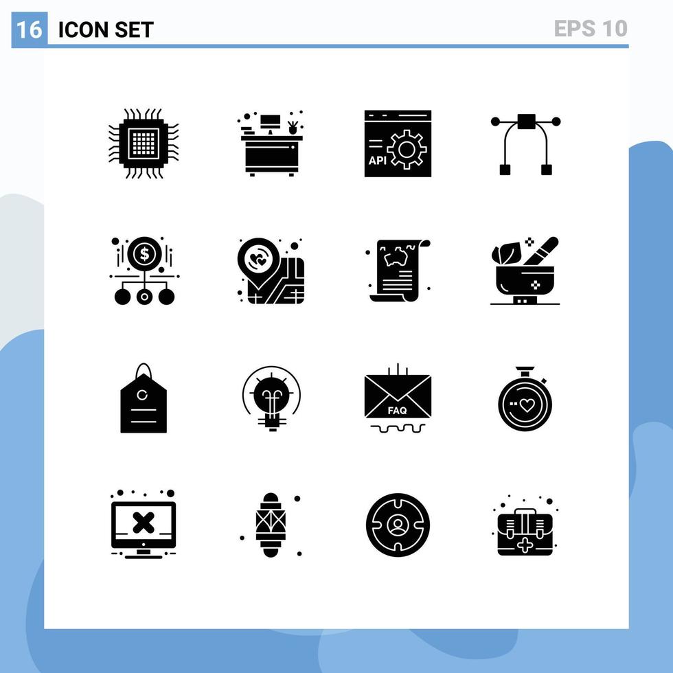 Pictogram Set of 16 Simple Solid Glyphs of magnifying tool browser graphic programming Editable Vector Design Elements
