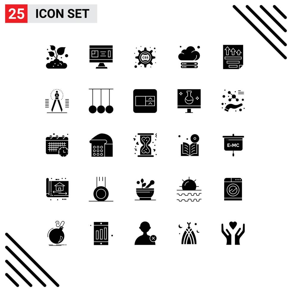 Modern Set of 25 Solid Glyphs and symbols such as data storage planning server css gear Editable Vector Design Elements Free Vector