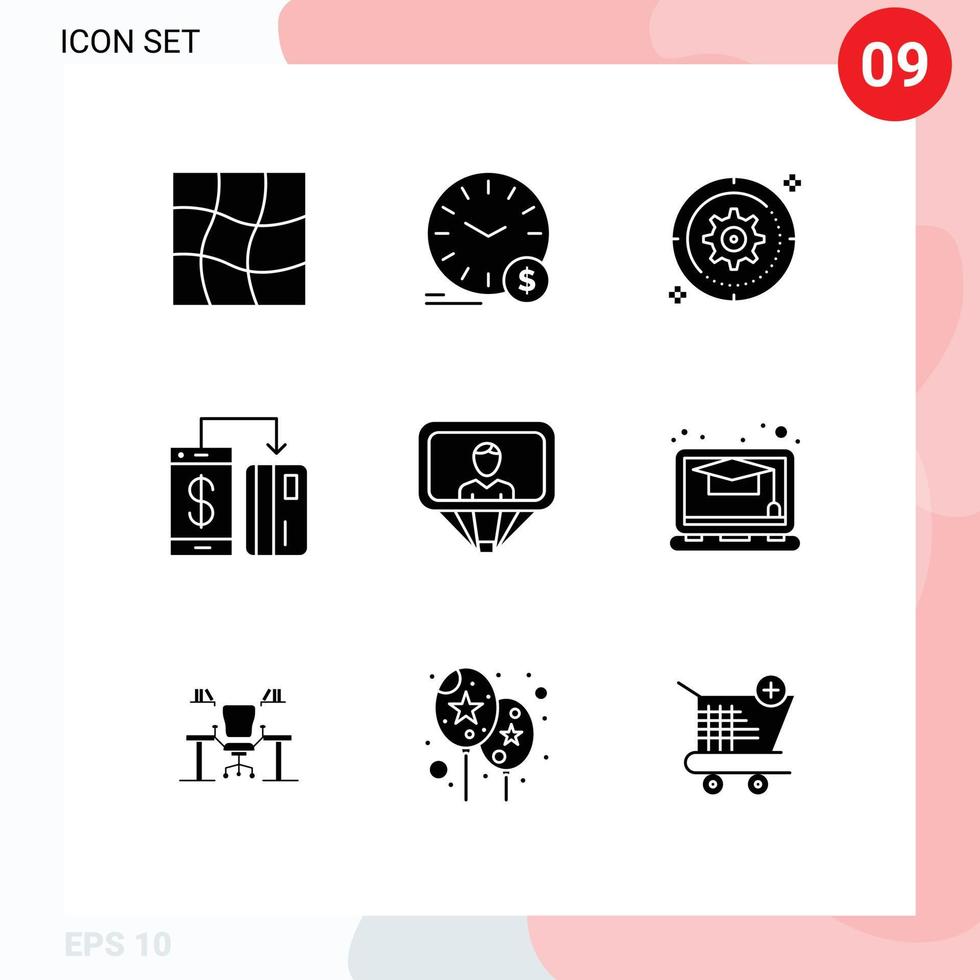 Set of 9 Modern UI Icons Symbols Signs for smartphone machine setting digital target Editable Vector Design Elements