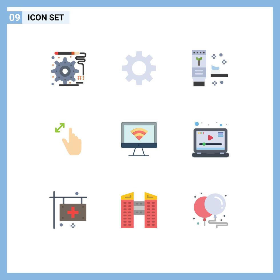 Set of 9 Modern UI Icons Symbols Signs for wifi computer natural touch interface Editable Vector Design Elements