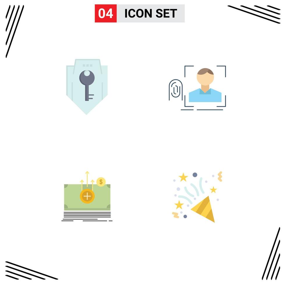 Modern Set of 4 Flat Icons and symbols such as access scanning security fingerprint dollar Editable Vector Design Elements Free Vector