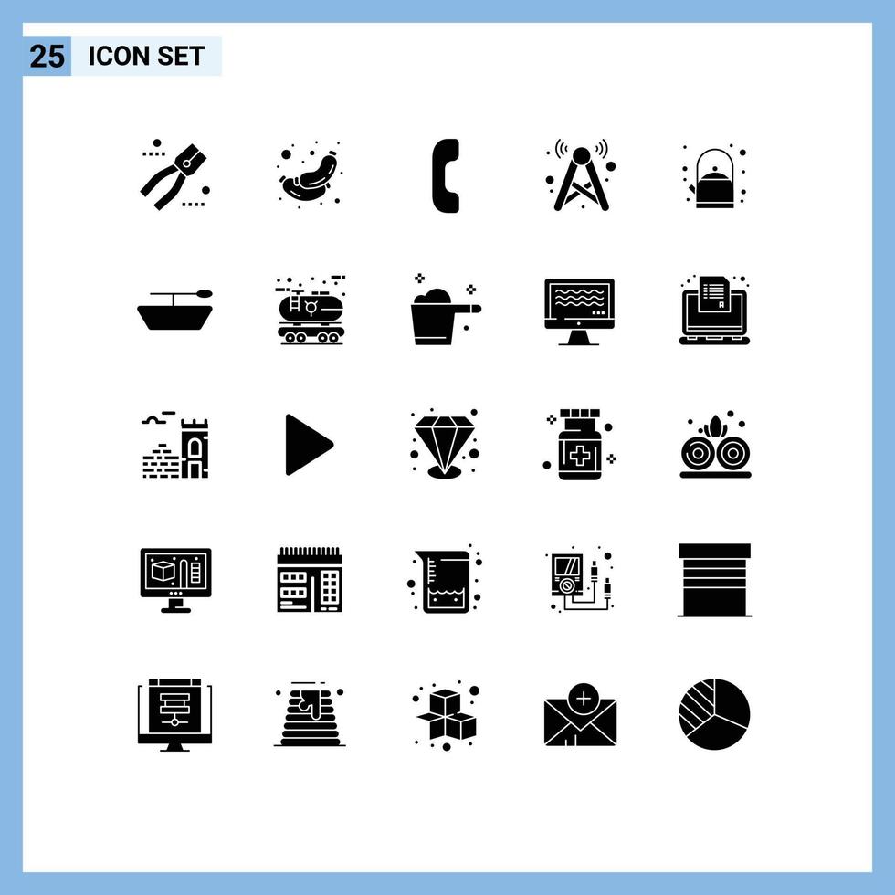Pack of 25 Modern Solid Glyphs Signs and Symbols for Web Print Media such as pot wifi answer network signal Editable Vector Design Elements