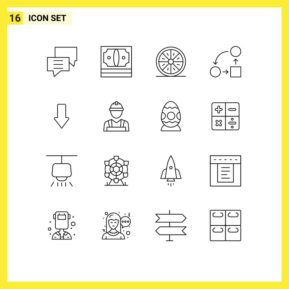 16 Universal Outlines Set for Web and Mobile Applications planning diagram money slice fruit Editable Vector Design Elements Free Vector