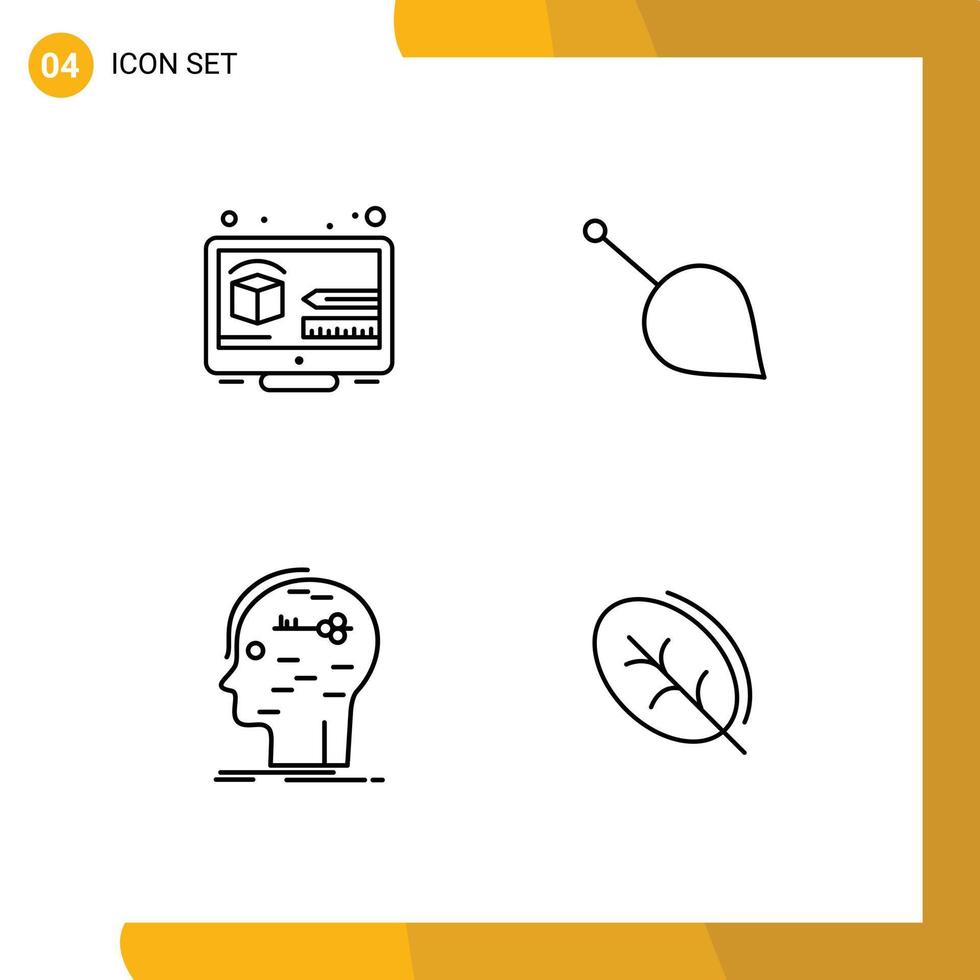 4 Line concept for Websites Mobile and Apps creative brain thinking crypto hacking Editable Vector Design Elements