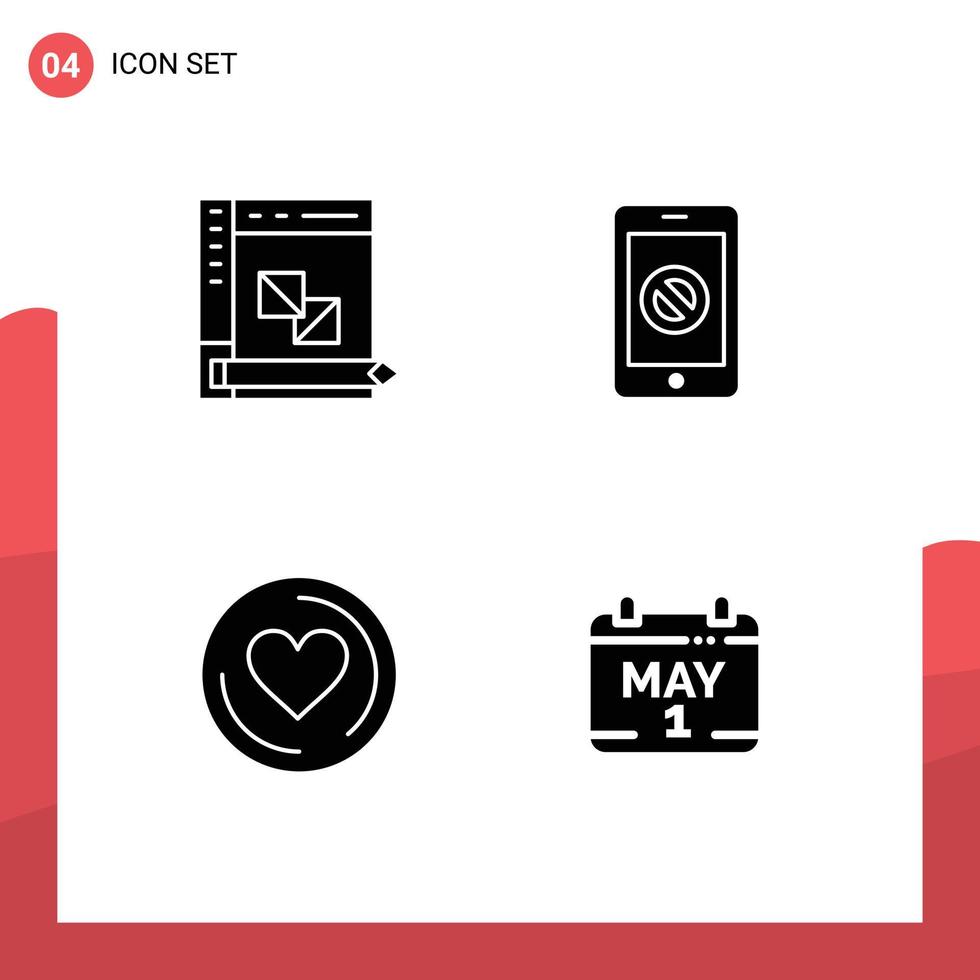 Group of 4 Solid Glyphs Signs and Symbols for coding no mobile panel cell cd Editable Vector Design Elements