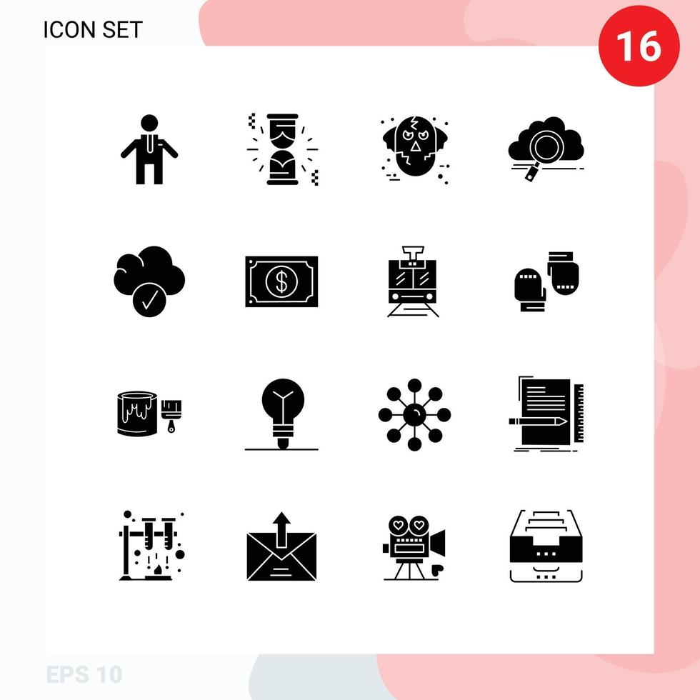 Group of 16 Modern Solid Glyphs Set for data cloud ware wolf computing storage Editable Vector Design Elements