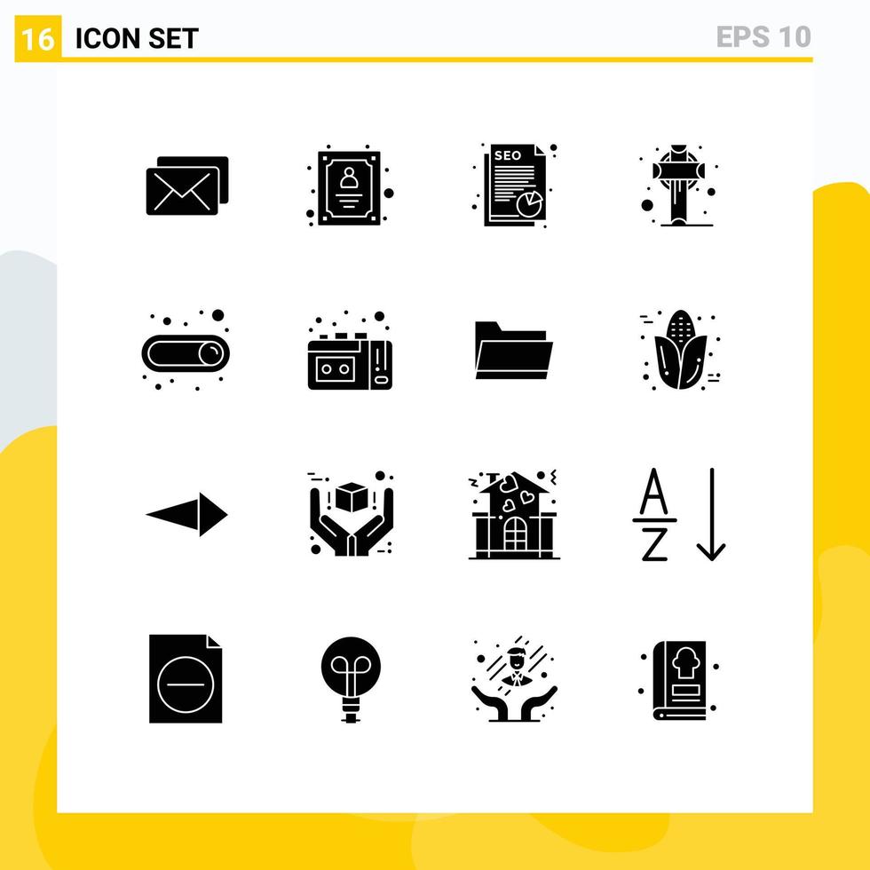16 Universal Solid Glyphs Set for Web and Mobile Applications toggle on paper saint ireland Editable Vector Design Elements