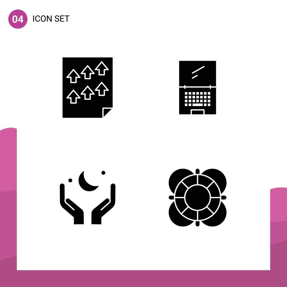 Set of 4 Vector Solid Glyphs on Grid for data laptop paper monitor hand Editable Vector Design Elements