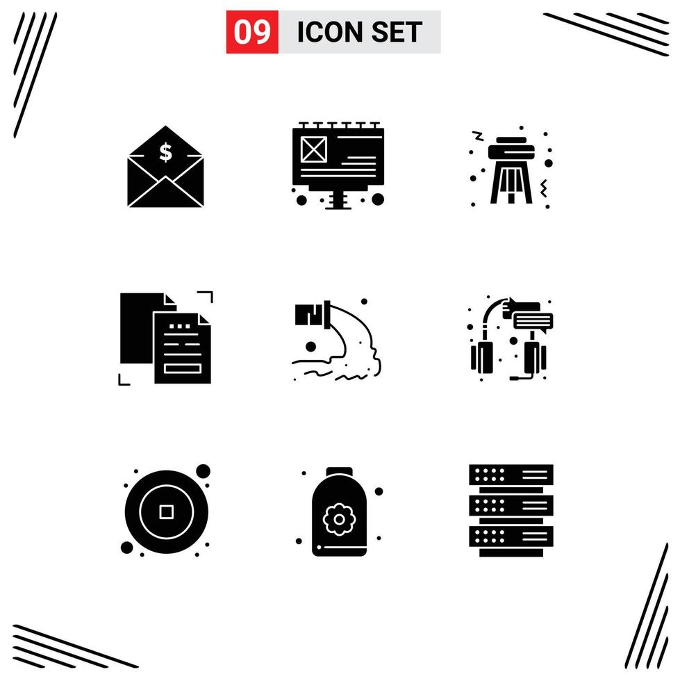 Pack of 9 creative Solid Glyphs of pollution duplicate stool document copy Editable Vector Design Elements