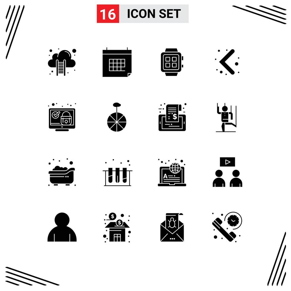 Pack of 16 Modern Solid Glyphs Signs and Symbols for Web Print Media such as lock left event arrow technology Editable Vector Design Elements Free Vector