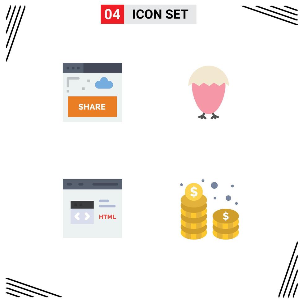 Flat Icon Pack of 4 Universal Symbols of interface coding website egg development Editable Vector Design Elements