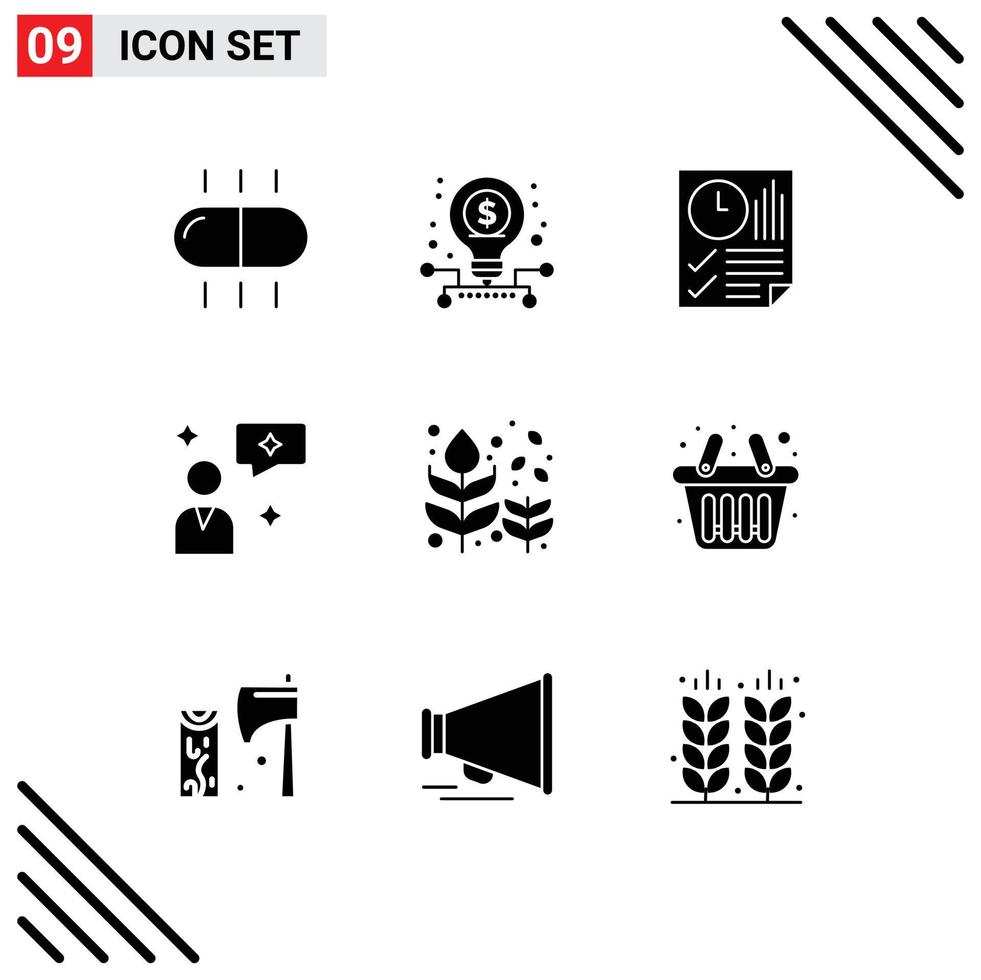 User Interface Pack of 9 Basic Solid Glyphs of fall autumn document interface man chat Editable Vector Design Elements Free Vector