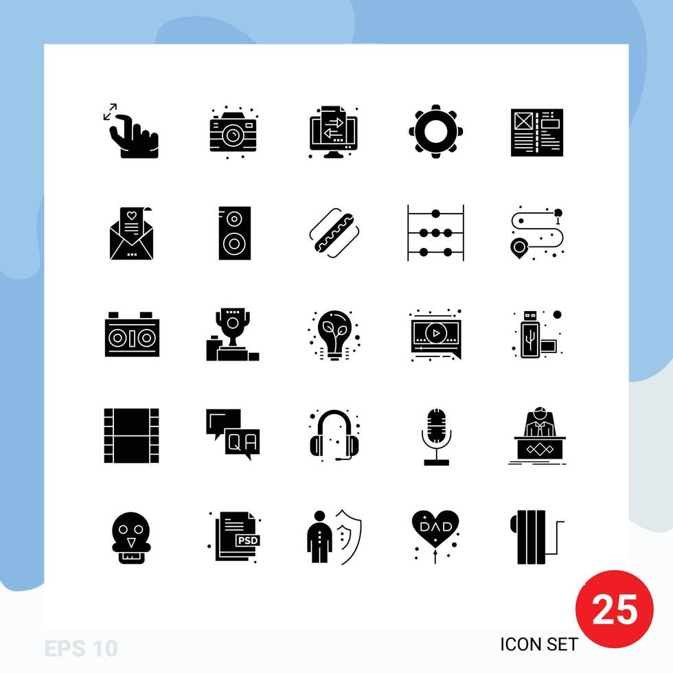 Group of 25 Solid Glyphs Signs and Symbols for blog mobile banking interface application Editable Vector Design Elements