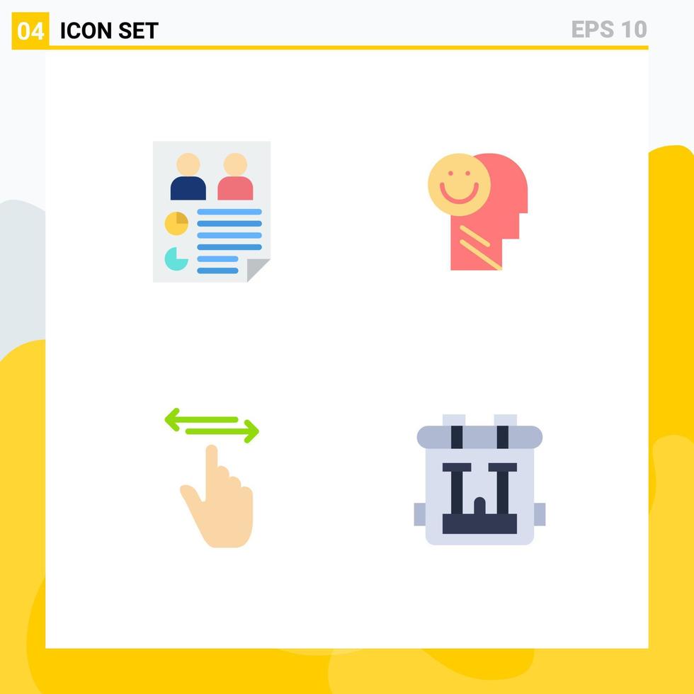 Modern Set of 4 Flat Icons Pictograph of data optimism report happy gestures Editable Vector Design Elements