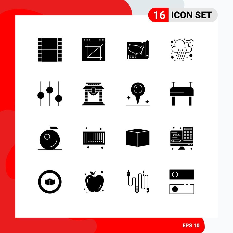 16 Solid Glyph concept for Websites Mobile and Apps tuning controls map rain autumn Editable Vector Design Elements