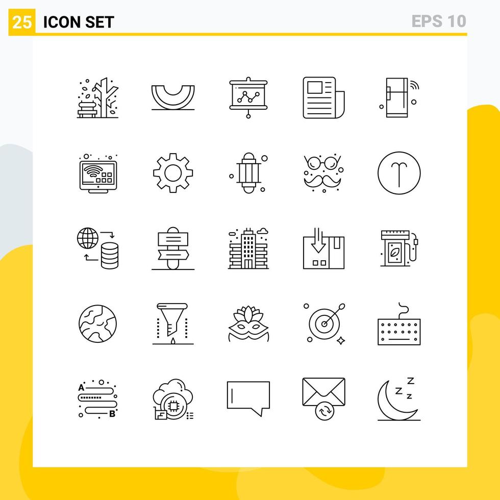 User Interface Pack of 25 Basic Lines of internet text slice sheet projector Editable Vector Design Elements Free Vector