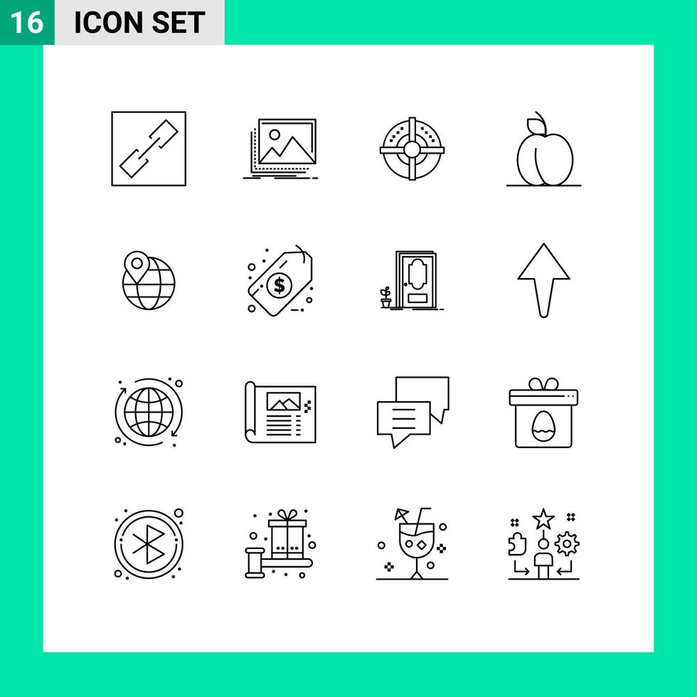 Set of 16 Vector Outlines on Grid for globe location target fruit apricot Editable Vector Design Elements Free Vector