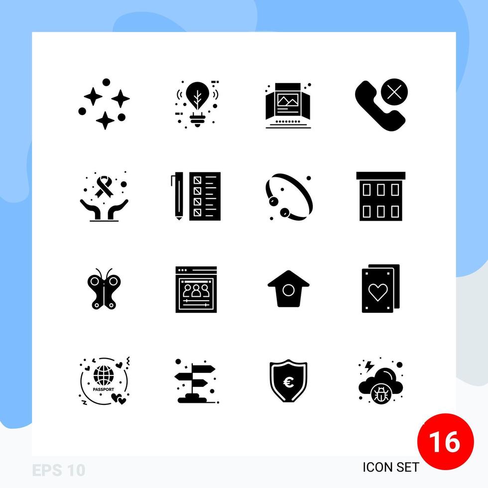 Set of 16 Modern UI Icons Symbols Signs for remove mobile ad contact tabletop display Editable Vector Design Elements